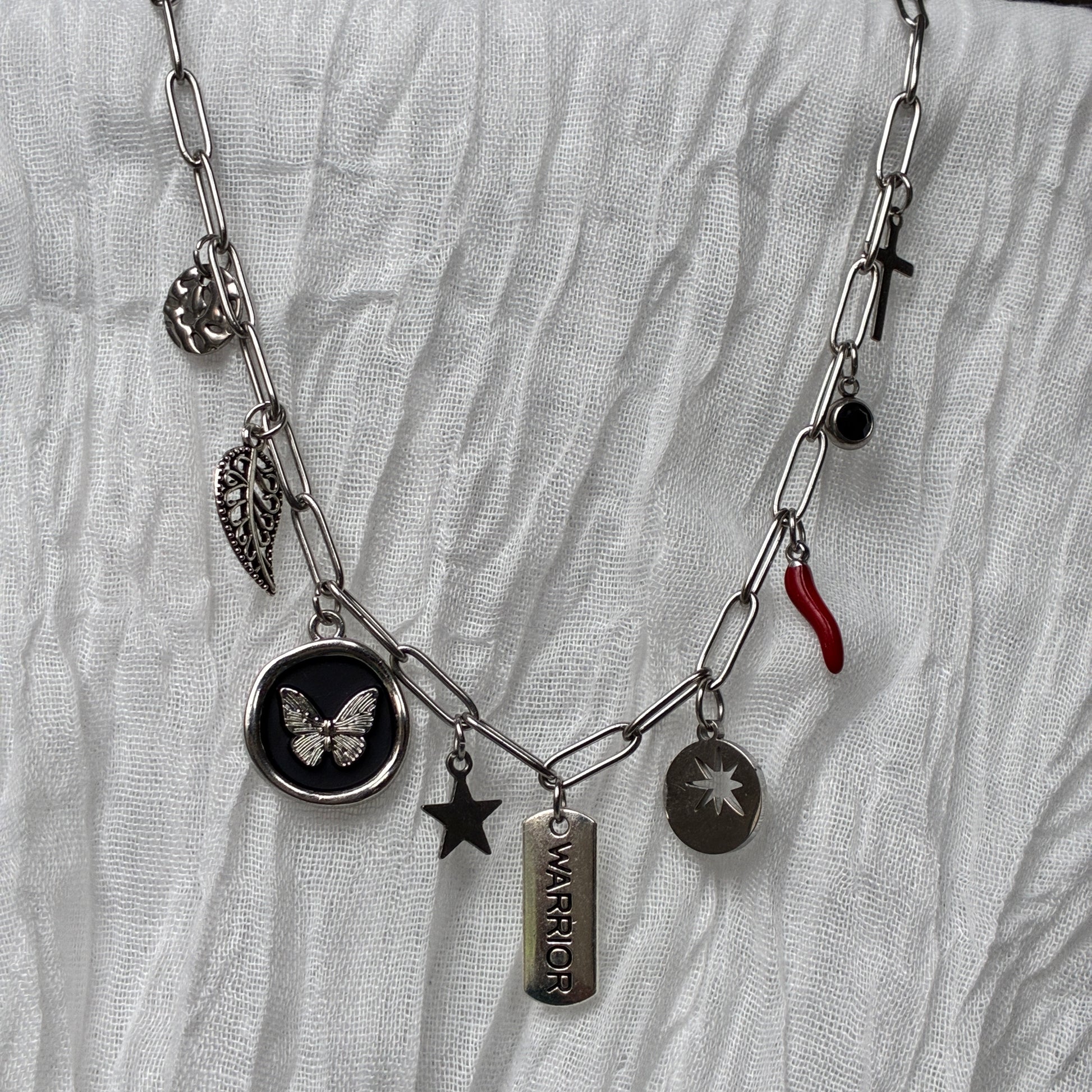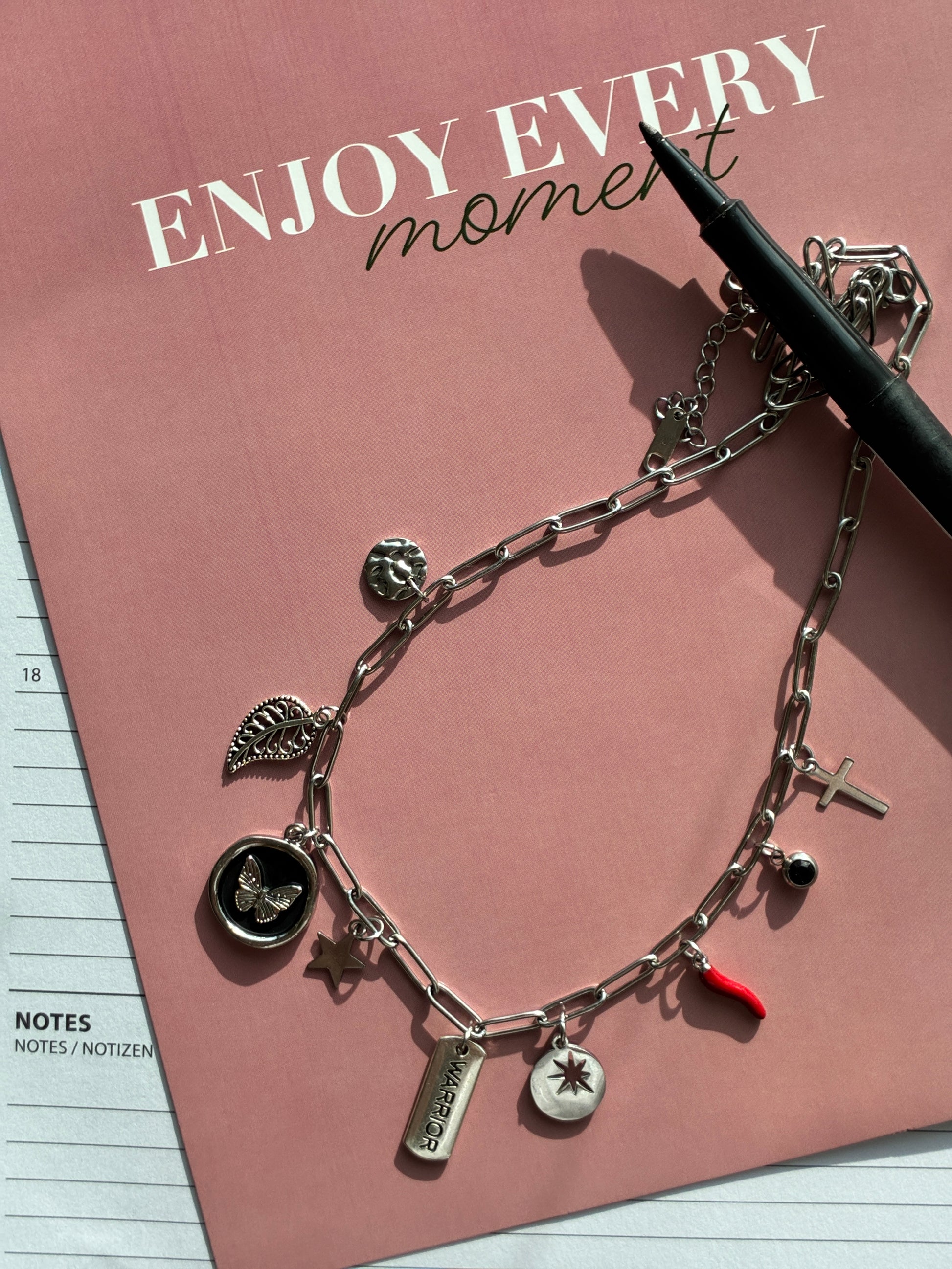 Une création pleine de force et de caractère. Sa maille trombone moderne s'associe à des talismans symbolisant la puissance intérieure.