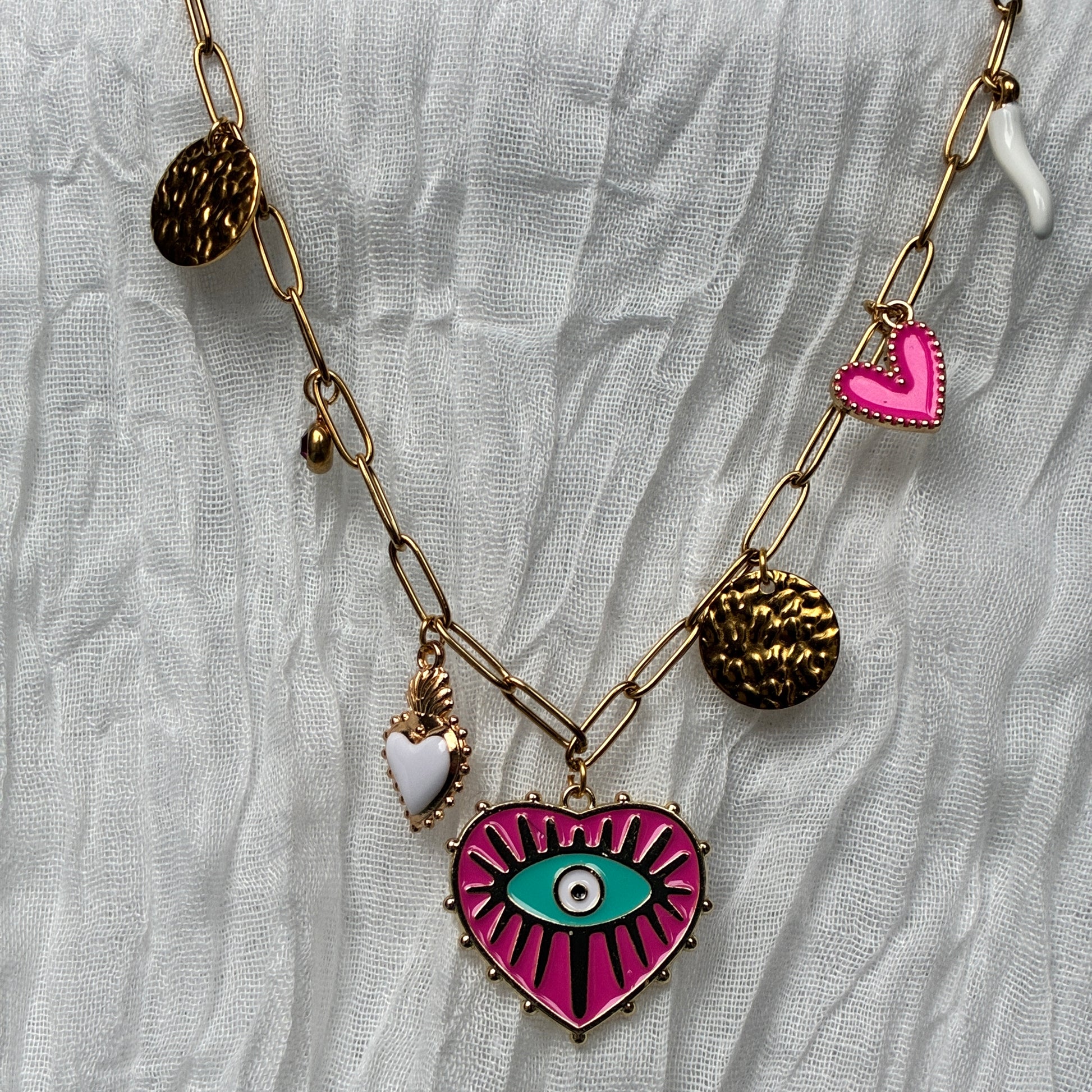 Un bijou qui ne passe jamais inaperçu si tu veux pimper ton look ! Ses charms coeur capturent toute l'énergie Love & Girly et le piment blanc ajoute une touche piquante et protectrice.