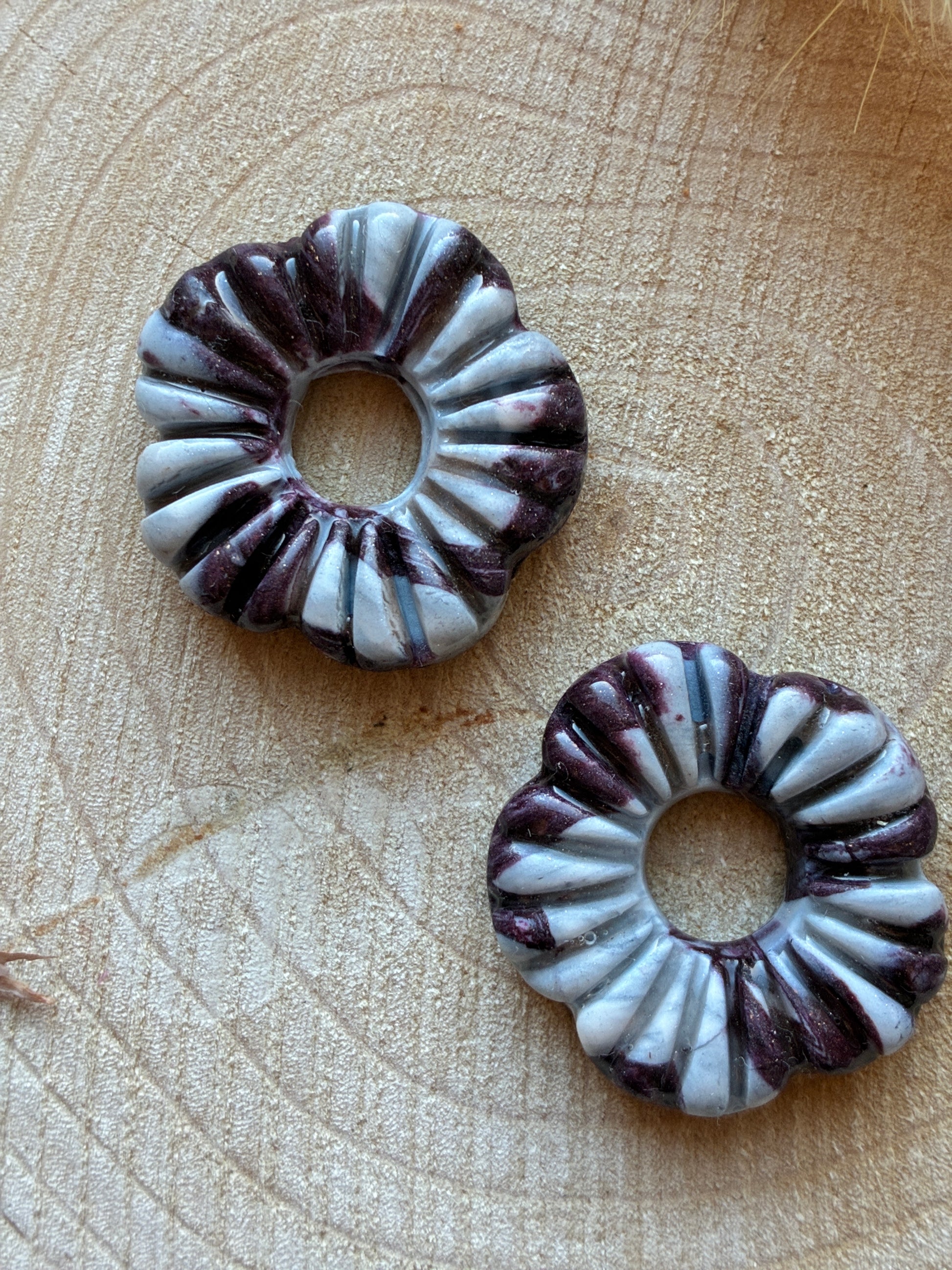 Pampilles interchangeables en pâte polymère sur anneaux en acier inoxydable.
