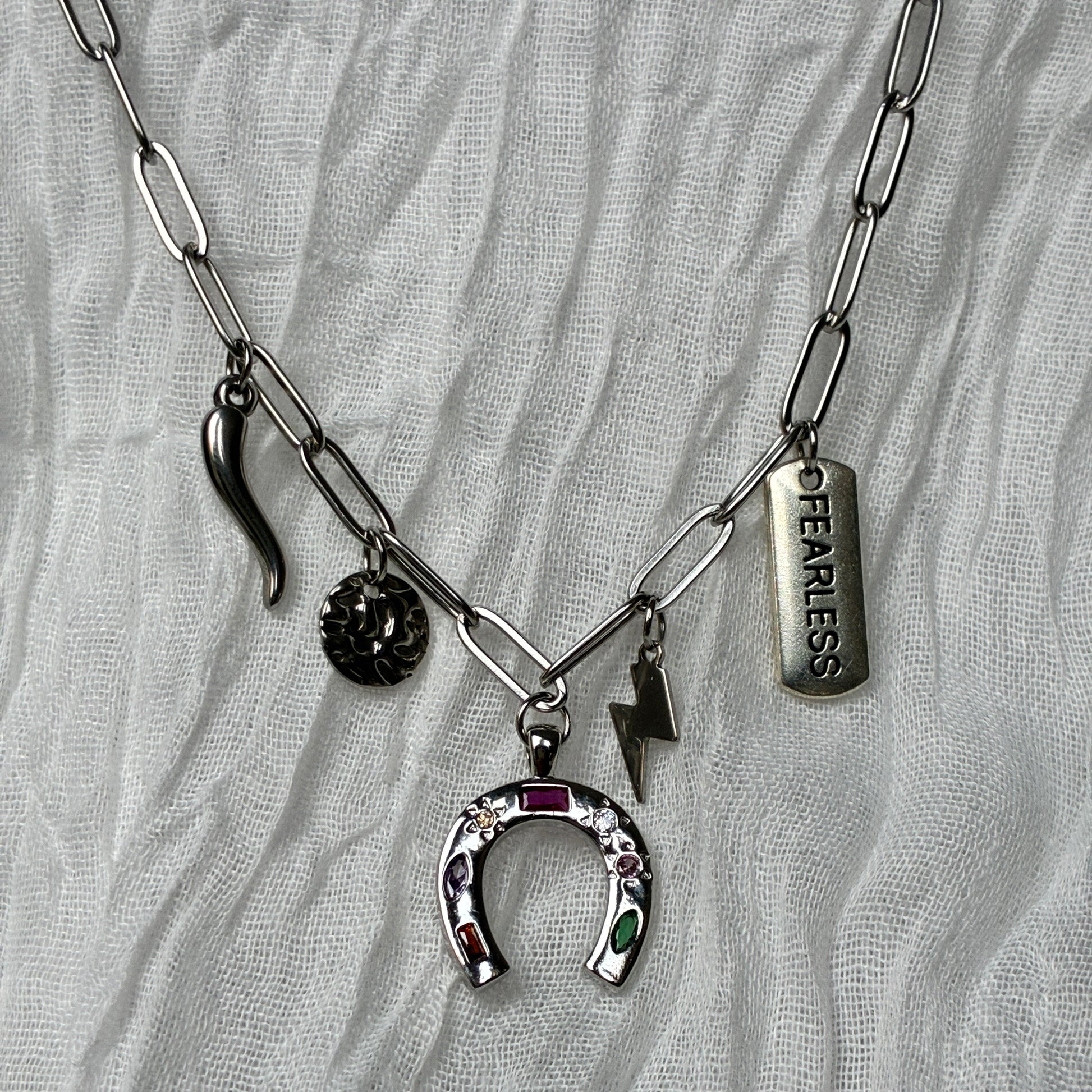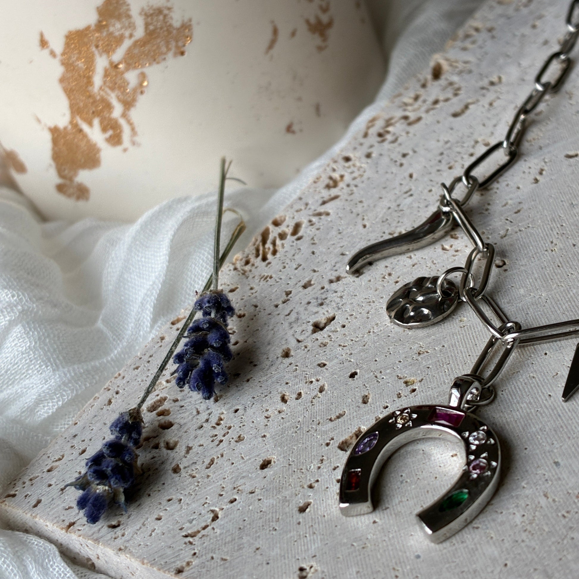 Un collier Talisman à l’énergie liée à la nature orné de symboles de chance et de courage, il célèbre la force féminine et les esprits libres. Un bijou bohème, lumineux et puissant.
